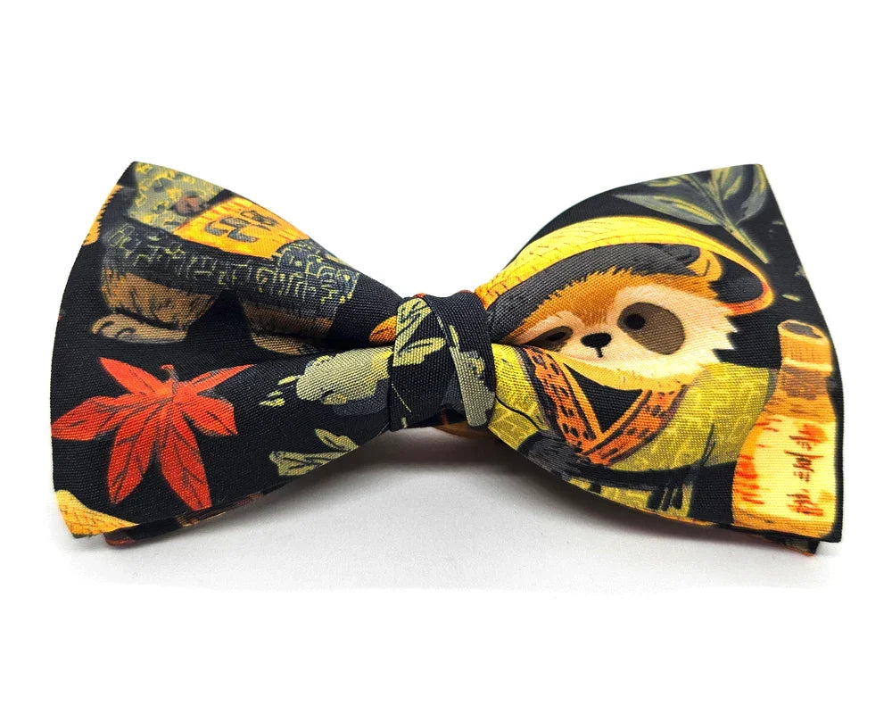 Ten en cuenta que los elementos como las hojas y los mapaches pueden estar posicionados de forma diferente en cada pajarita, cada una es única.