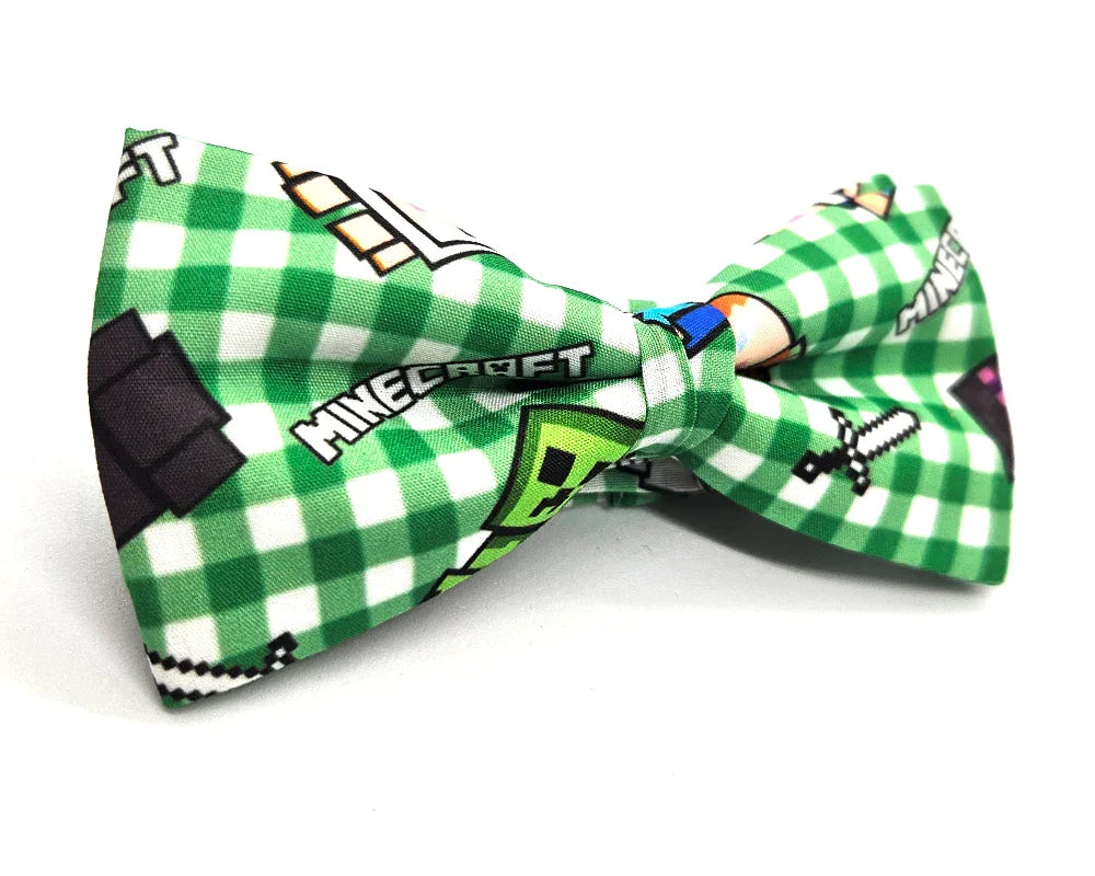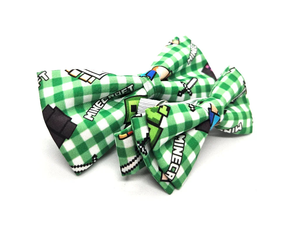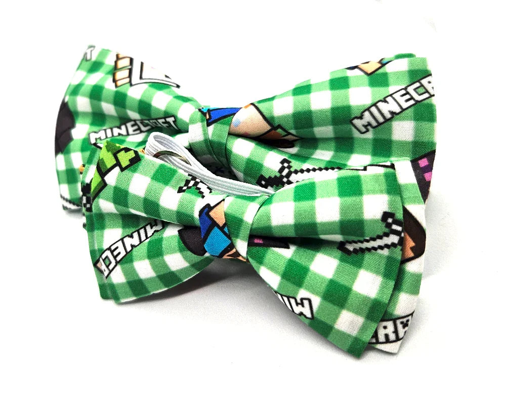 Pajarita confeccionada en algodón, diseñada en exclusiva por Pitas, Pitas Pajaritas, con pixeles y los icónicos personajes del videojuego Minecraft.