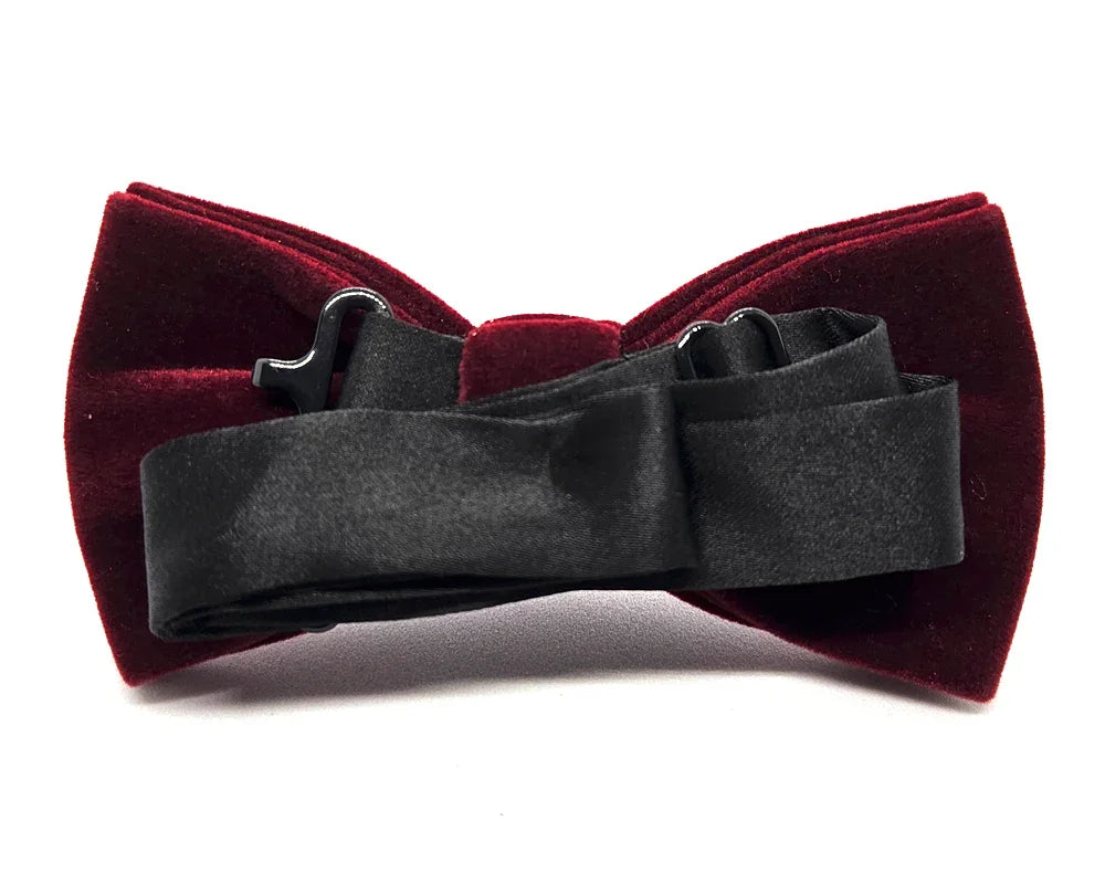 Pajarita confeccionada en terciopelo granate oscuro. La elegancia y sobriedad que confiere el terciopelo con un color clásico y versátil, granate oscuro, viste, llama la atención sin perder el estilo.